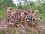 O escoteiro se diverte até mesmo quando nao conseguem se mexer de tanta lama
